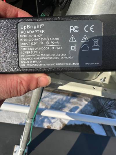 - Power adapter for running EFR capable of outputting 29.5 Volts at 3 Amps