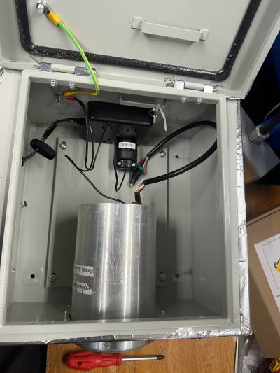 - Loosen on of the 4 outer allen head screws on the top (inside the enclosure) of the EFR and secure the stripped end of the new wire to the loosened allen head and tighten it, tug on the wire to ensure it is secure