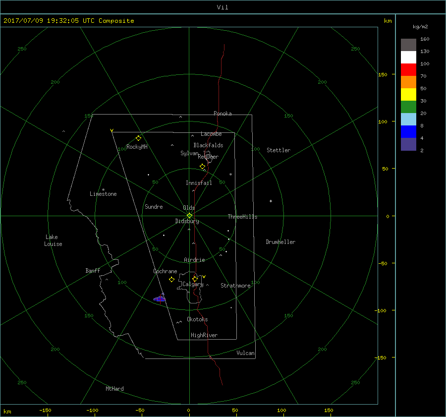 Animated gif image of a case (Complex Track Number 12, Simple Track Number 12) from 2017/07/09, Olds radar site. animated_20170709_c12s12.gif