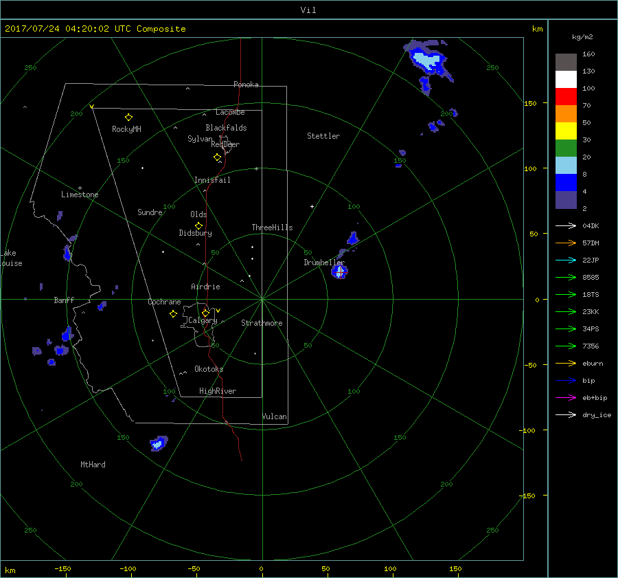 Animated gif image of a case (Complex Track Number 20, Simple Track Number 38) from 2017/07/04, Olds radar site. animated_20170704_c20s38.gif