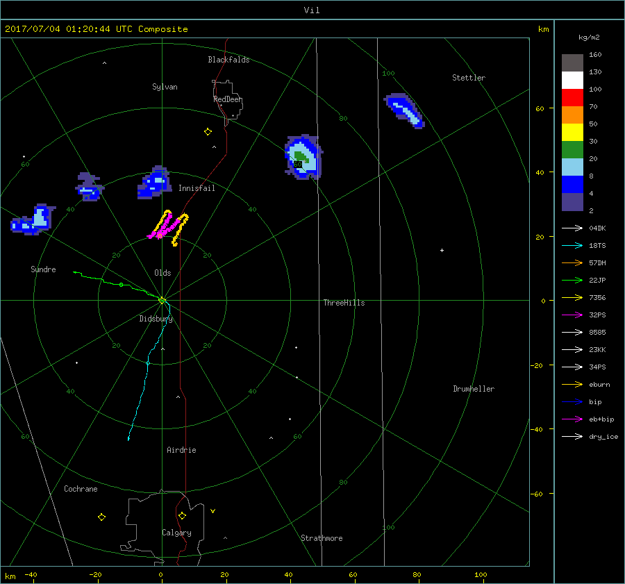 ASCII Files, Plots and Animated gifs For A Selective Target Case From The Calgary Hail Analysis Project